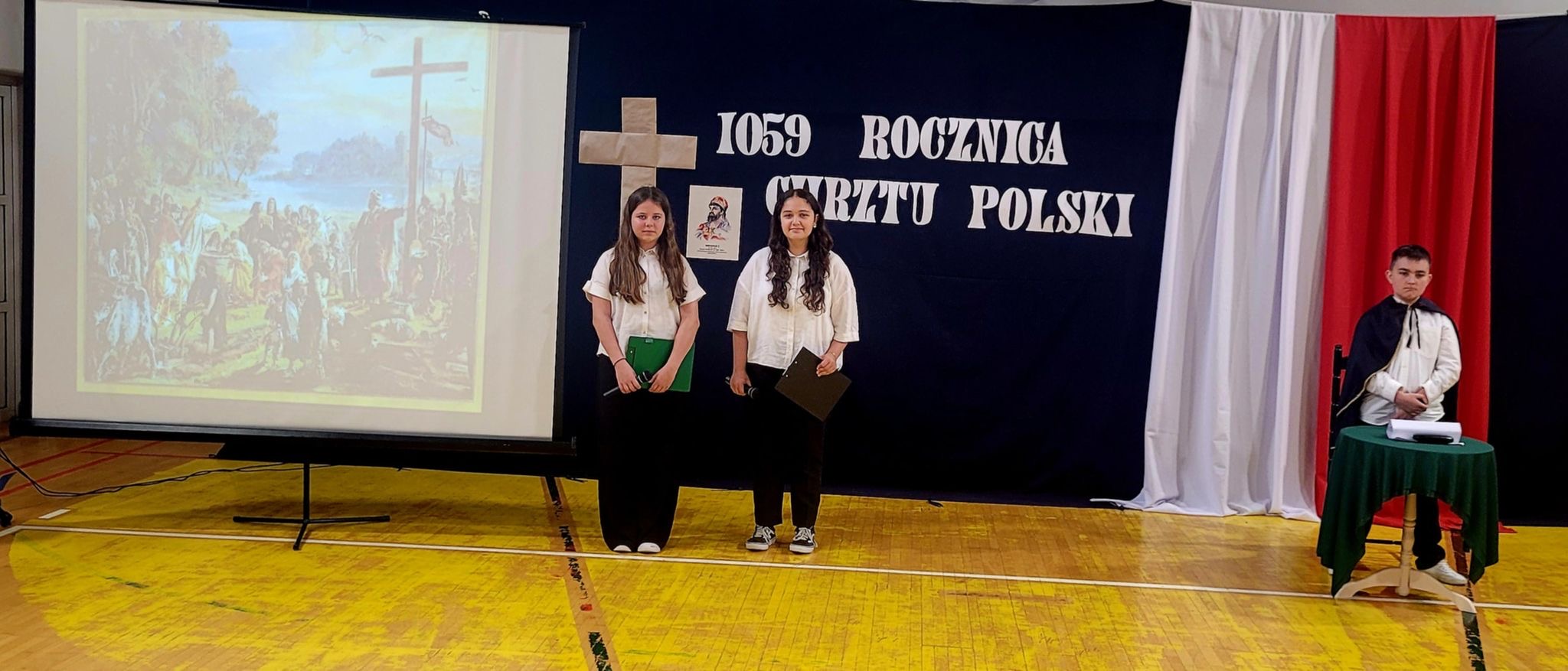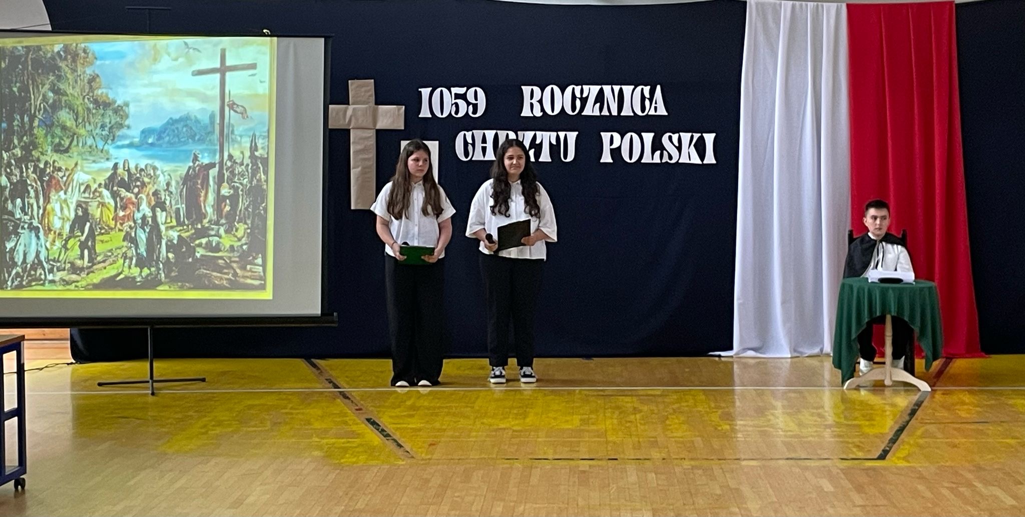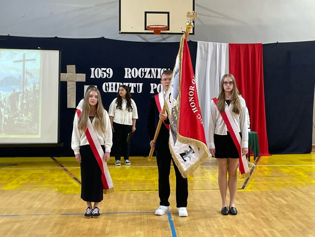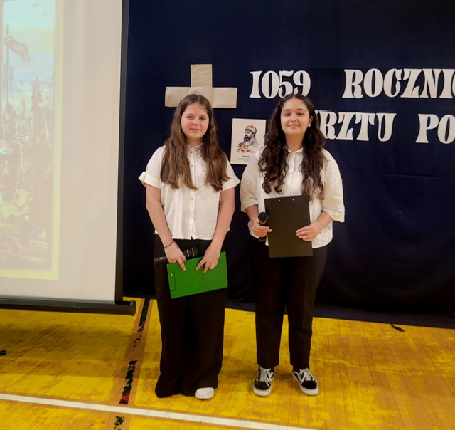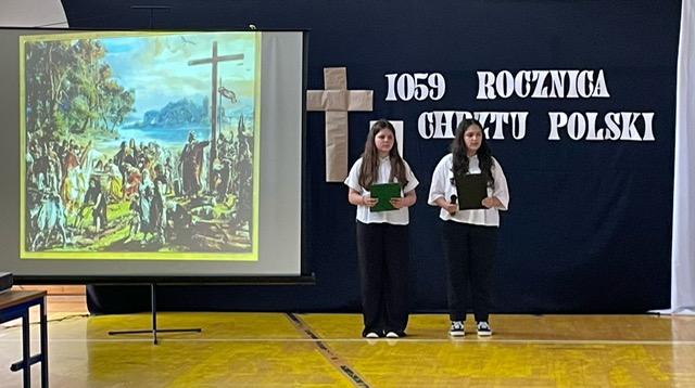 z okazji tych dwóch ważnych wydarzeń, w naszej szkole odbyła się Akademia upamiętniająca te ważne wydarzenia w dziejach Polskiego Narodu. Apel był ciekawą formą prezentacji wydarzeń z lat panowania pierwszego historycznego władcy Polski w dynastii Piastów. Za datę Chrztu Polski uznaje się Wielką Sobotę 14 kwietnia 966r.