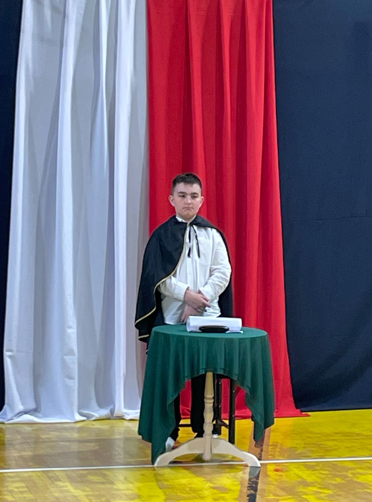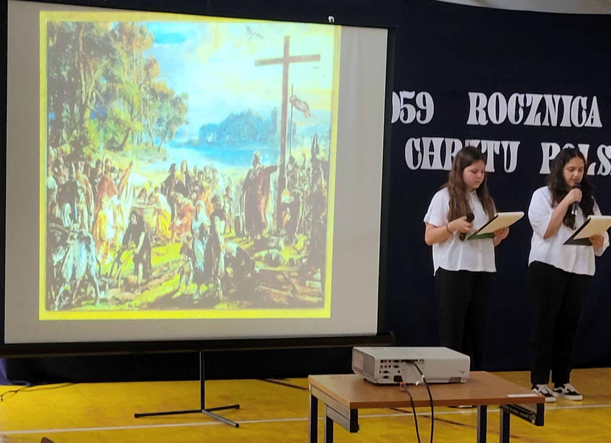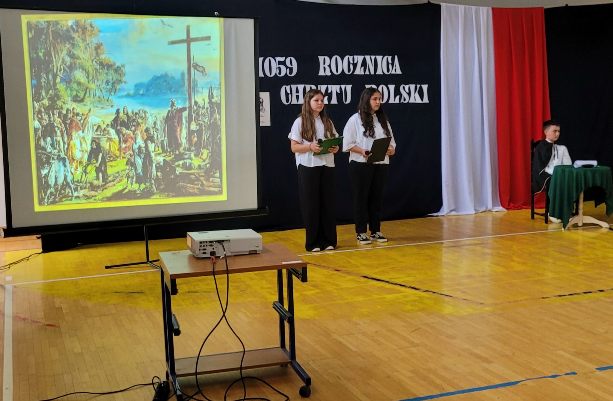 z okazji tych dwóch ważnych wydarzeń, w naszej szkole odbyła się Akademia upamiętniająca te ważne wydarzenia w dziejach Polskiego Narodu. Apel był ciekawą formą prezentacji wydarzeń z lat panowania pierwszego historycznego władcy Polski w dynastii Piastów. Za datę Chrztu Polski uznaje się Wielką Sobotę 14 kwietnia 966r.
