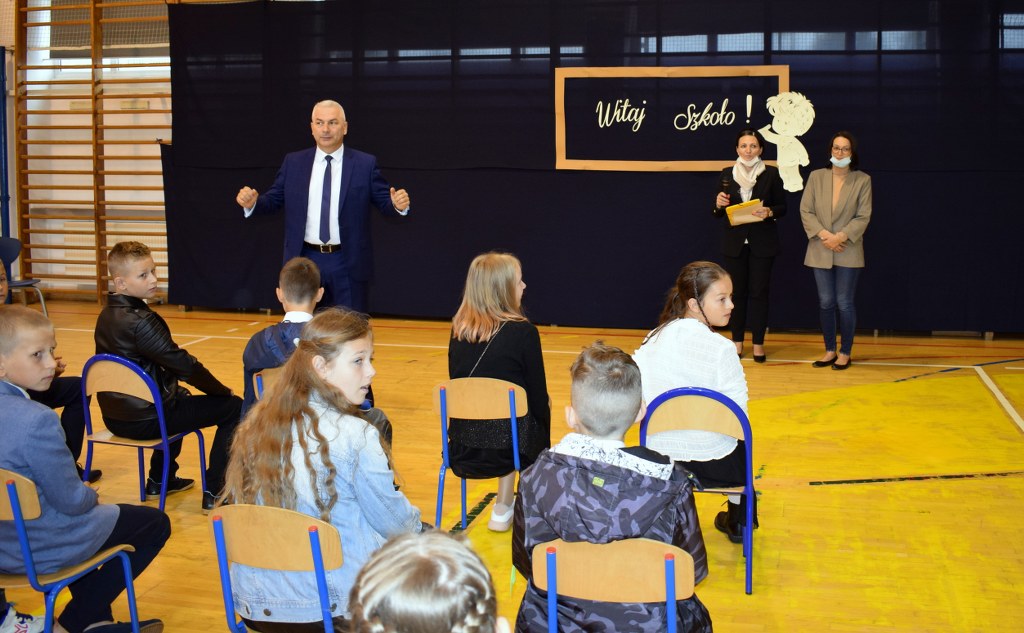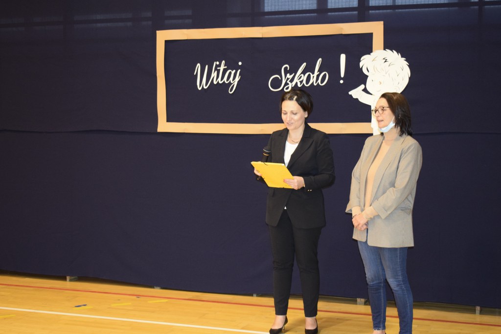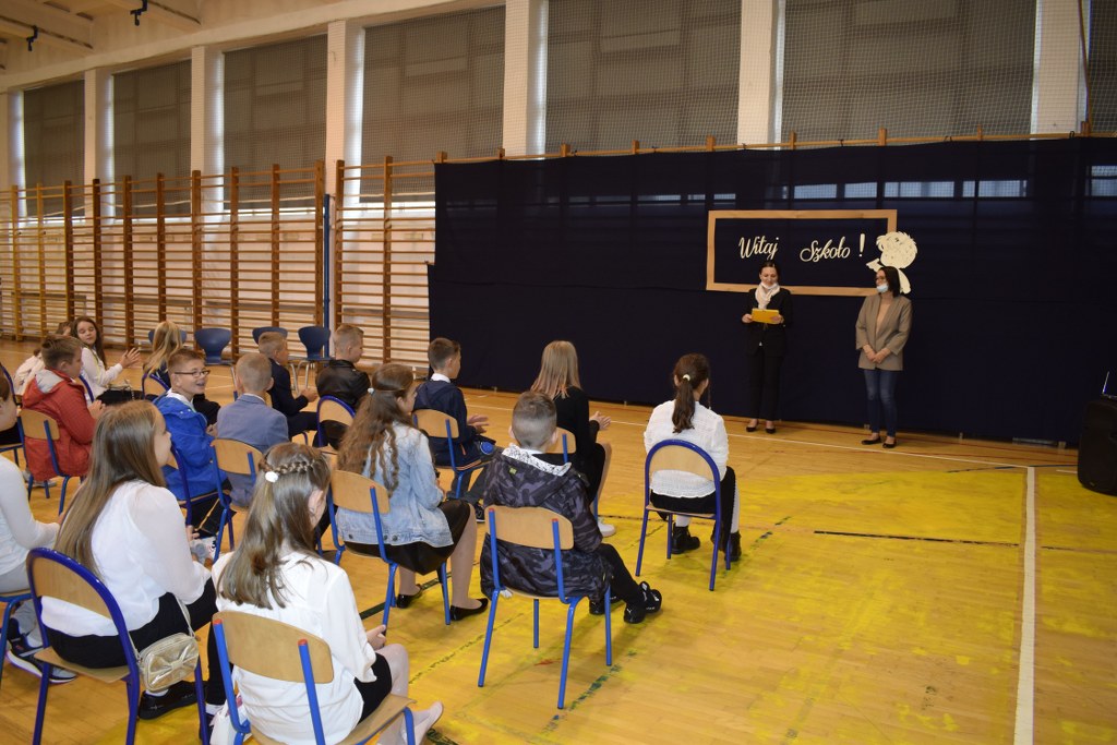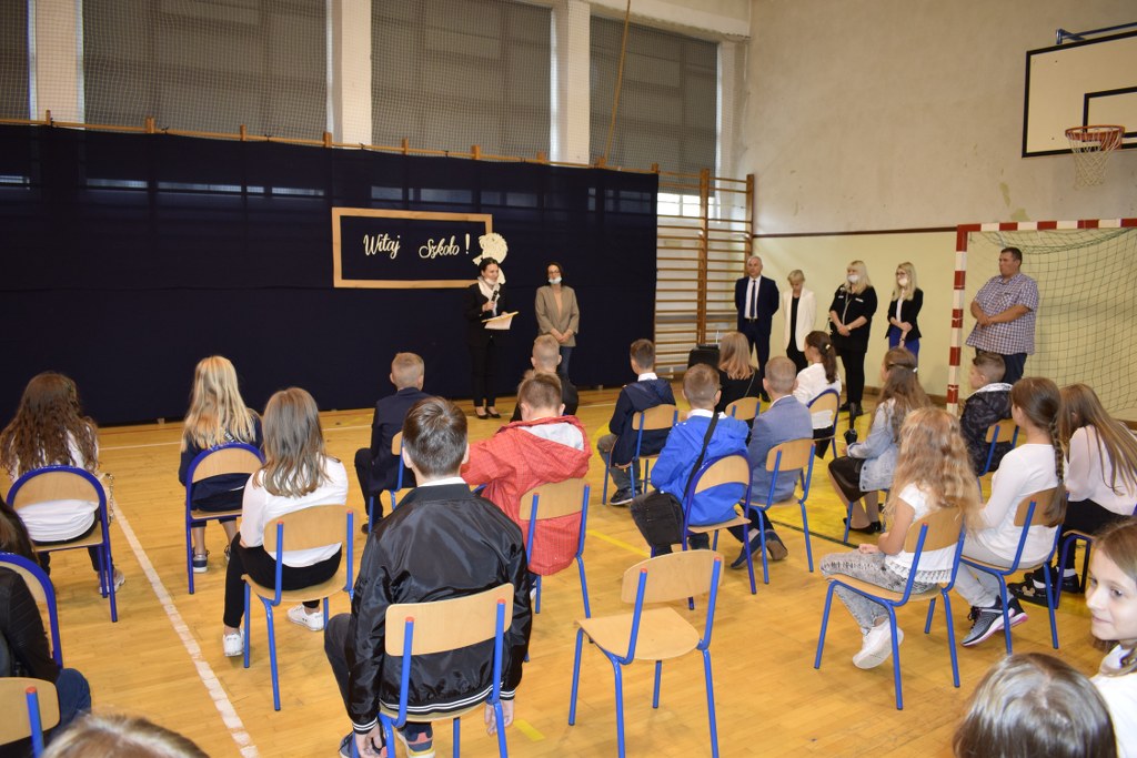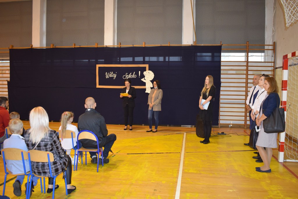 Z powodu obostrzeń pandemicznych, nie mogliśmy spotkać się wszyscy razem. Uczniowie wraz z wychowawcami powitali się w salach lekcyjnych. Pierwszoklasistów, dla których dzwonek dosłownie zabrzmiał po raz pierwszy i odtąd to on, przez wiele lat, będzie wyznaczał ich rytm życia, powitała pani dyrektor Małgorzata Balicka wraz z nauczycielami na sali gimnastycznej. W tak doniosłej chwili nie mogło zabraknąć bliskich, towarzyszących i wspierających najważniejsze osoby w tym dniu.
