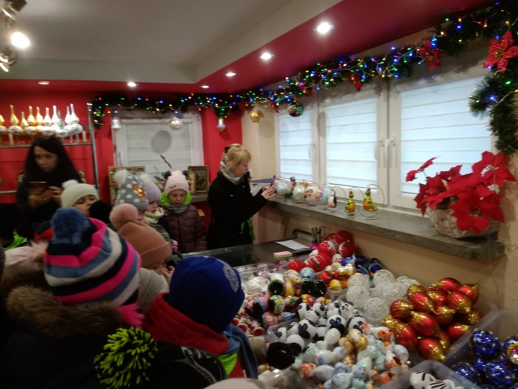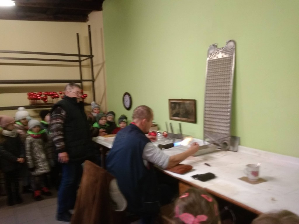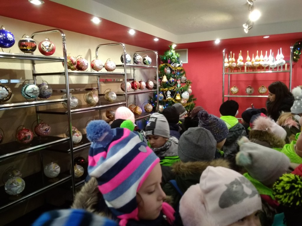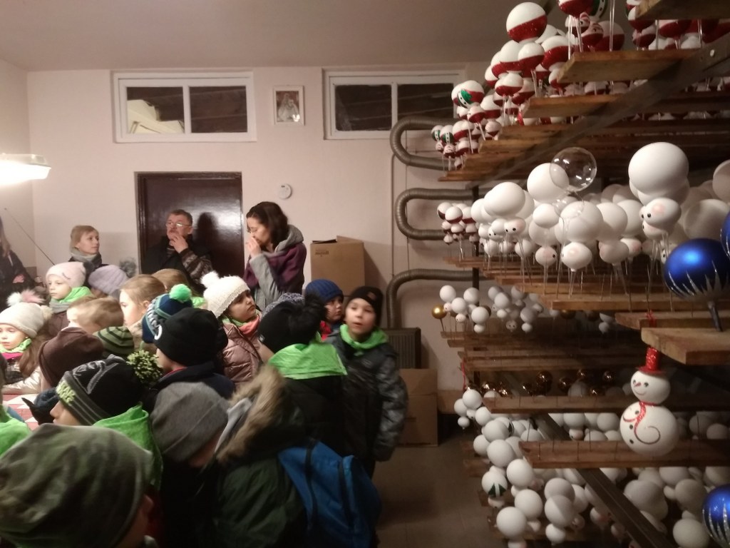 Czy wiecie jak powstają bombki choinkowe? My już wiemy. Przed świętami mogliśmy to zobaczyć na własne oczy. Odwiedziliśmy fabrykę bombek, gdzie dowiedzieliśmy się, jak wiele pracy różnych ludzi potrzeba, aby taka piękna ozdoba zawisła na świątecznym drzewku. Widzieliśmy, jak dmucha się szkło, aby przybrało różne kształty, przyglądaliśmy się pracy pani, która ręcznie maluje i zdobi każdą figurkę. Zrozumieliśmy, że każda z nich, to małe dzieło sztuki. A na koniec dostaliśmy bombkę w kształcie bałwanka z wypisanym własnym imieniem.