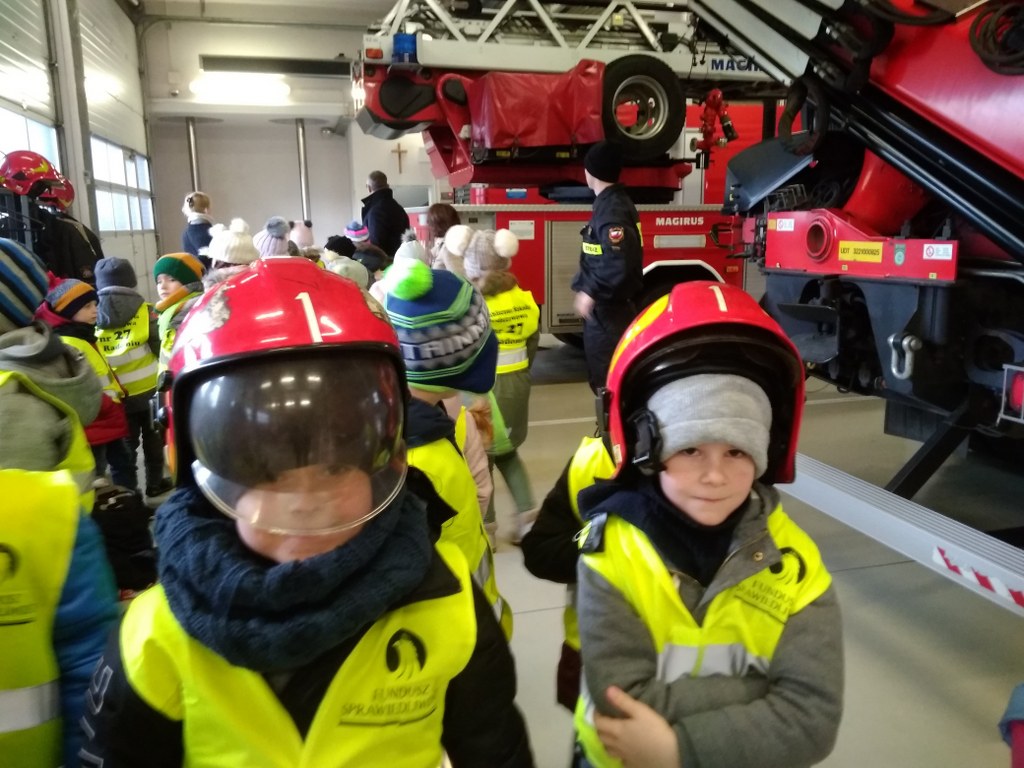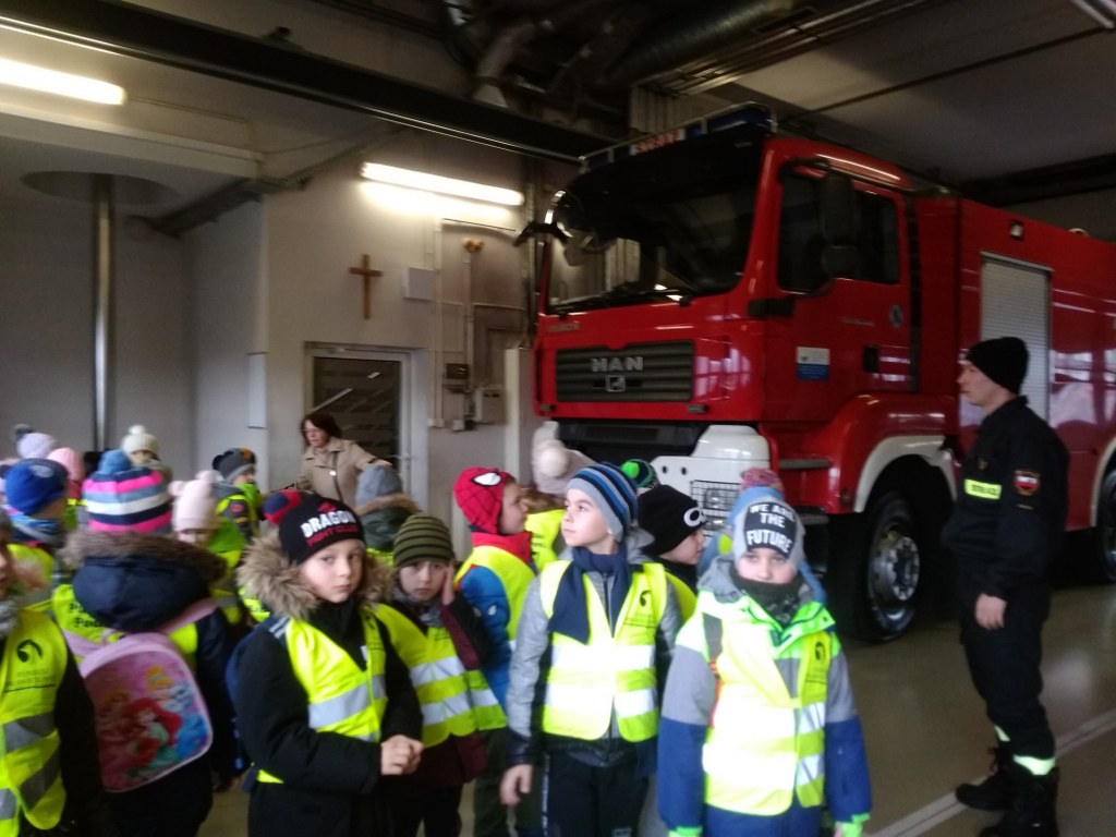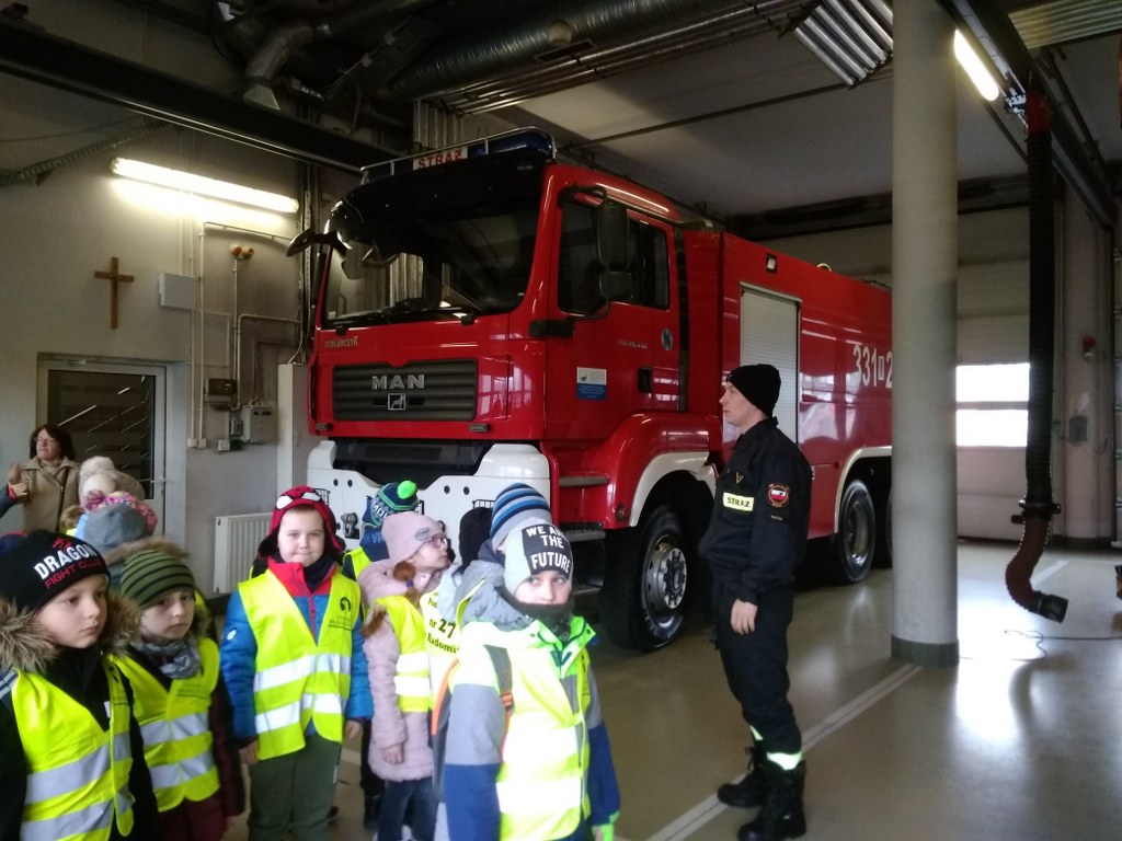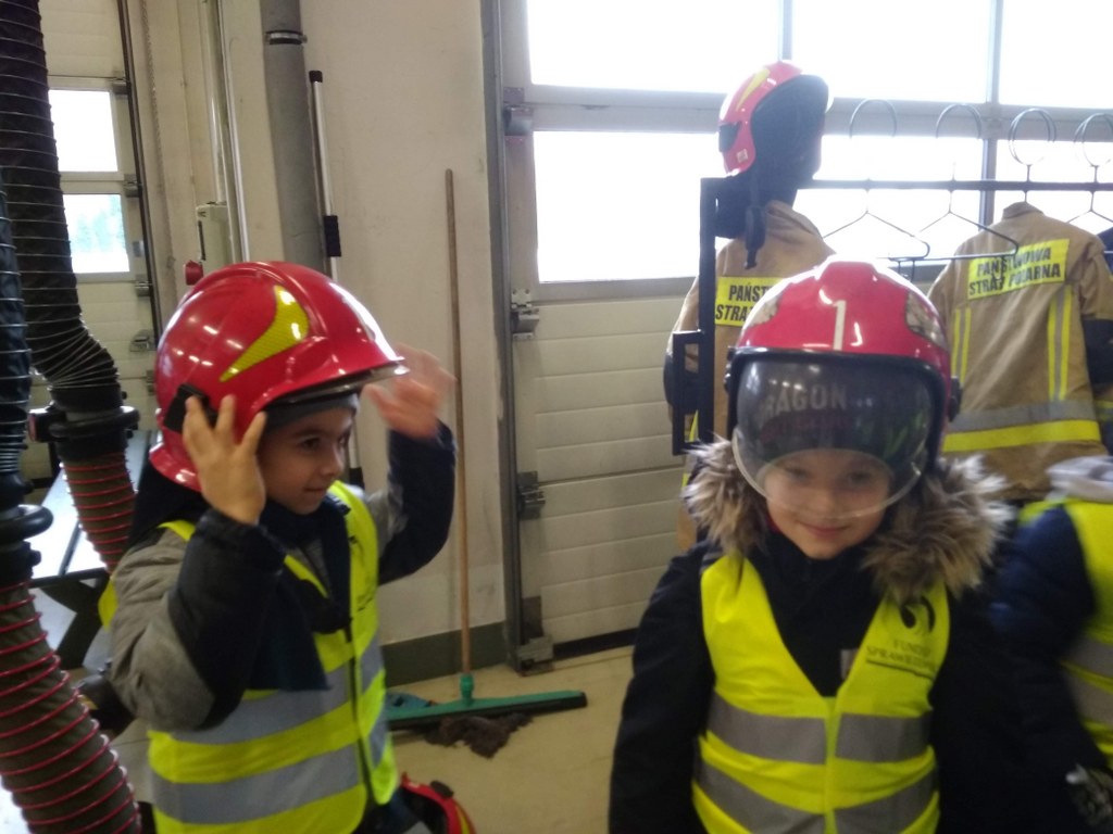 17 grudnia 2019 roku uczniowie klasy 1a i 1b mieli okazję przekonania się,jak wygląda praca strażaka. Podczas bardzo ciekawej prelekcji dowiedzieliśmy się o zasadach bezpieczeństwa w domu i poza nim. Następnie obejrzeliśmy remizę, samochody strażackie, a nawet mogliśmy przymierzyć kaski. Być może niejedno z nas w przyszłości zwiąże się z tym trudnym, ale pięknym i bardzo potrzebnym zawodem.