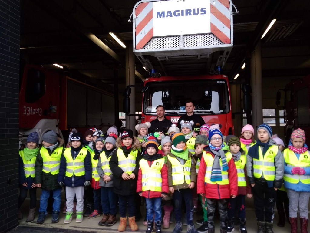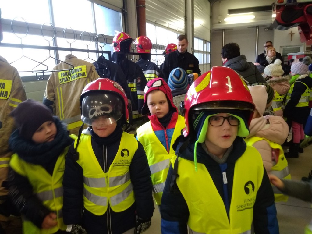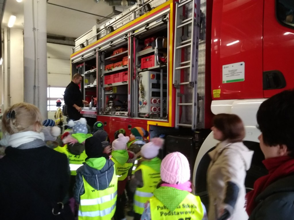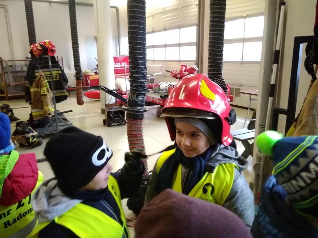 17 grudnia 2019 roku uczniowie klasy 1a i 1b mieli okazję przekonania się,jak wygląda praca strażaka. Podczas bardzo ciekawej prelekcji dowiedzieliśmy się o zasadach bezpieczeństwa w domu i poza nim. Następnie obejrzeliśmy remizę, samochody strażackie, a nawet mogliśmy przymierzyć kaski. Być może niejedno z nas w przyszłości zwiąże się z tym trudnym, ale pięknym i bardzo potrzebnym zawodem.