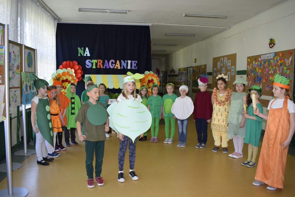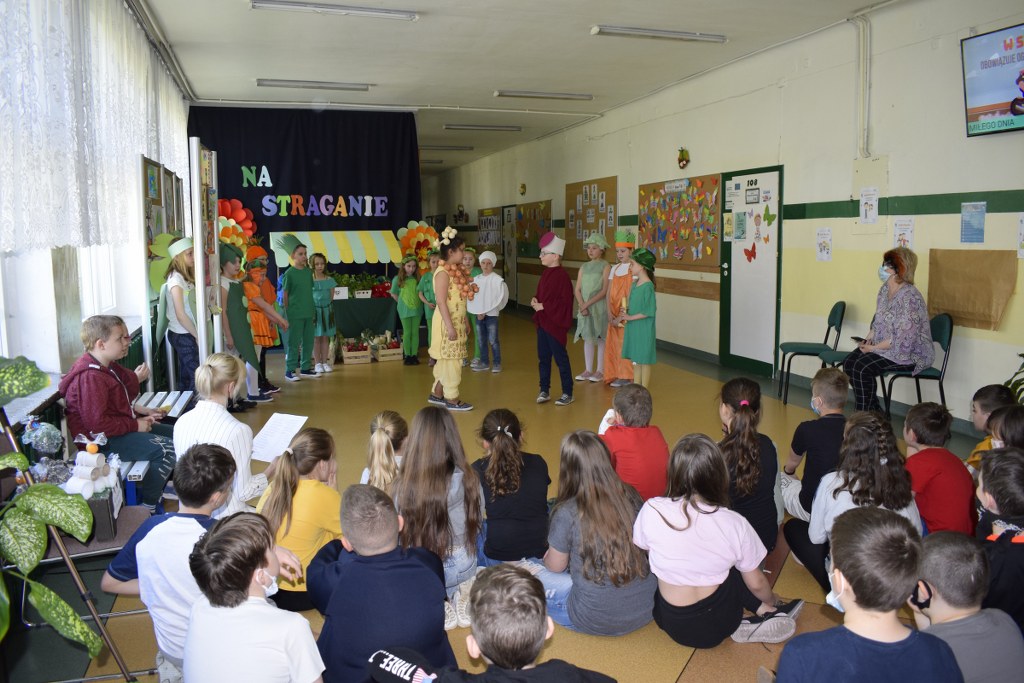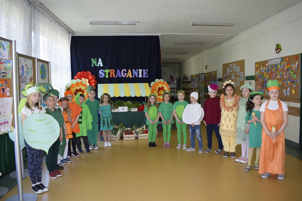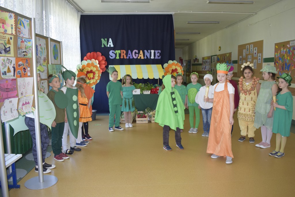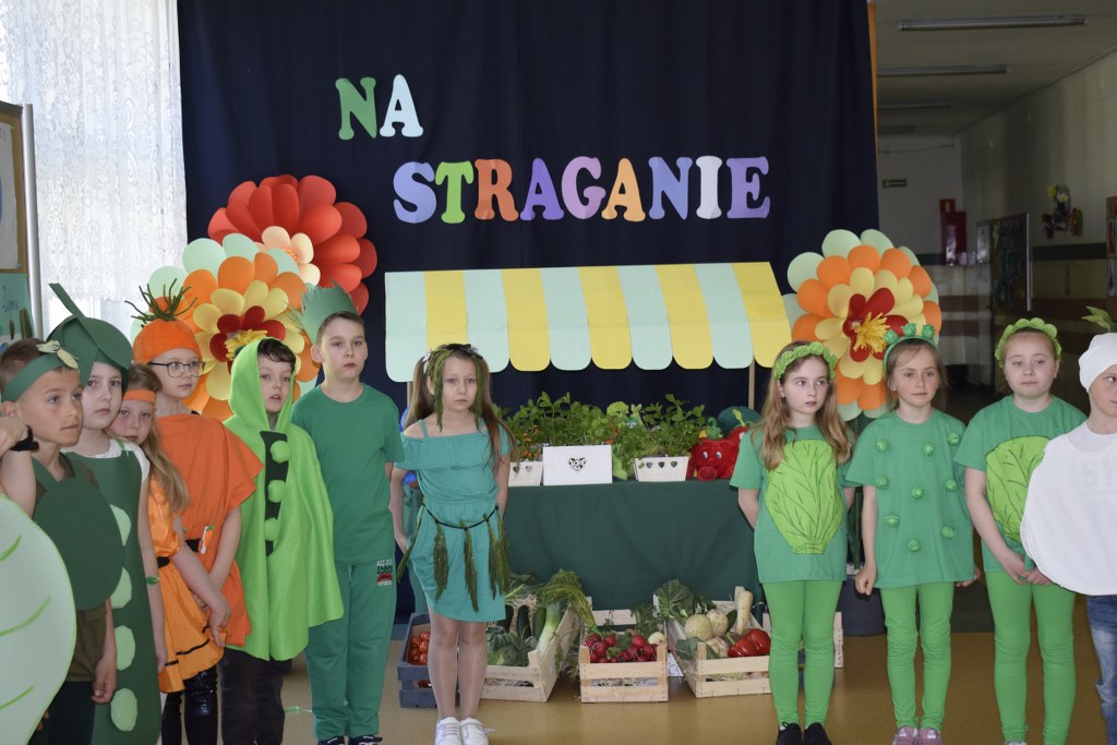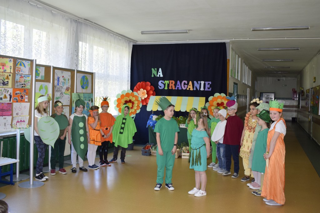 Szkolne koło teatralne pod kierunkiem Pani Mileny Tęczy – Bilskiej przygotowało przedstawienie na podstawie wiersza Jana Brzechwy pt. „Na starganie”. Aktorzy mieli piękne stroje, które bezbłędnie wskazywały na graną postać. Dekoracja również przenosiła nas wprost na gwarny bazar, na którym przekupki zachwalają swój towar. Uczniowie z talentem odegrali swoje role, za co zostali nagrodzeni wielkimi brawami.