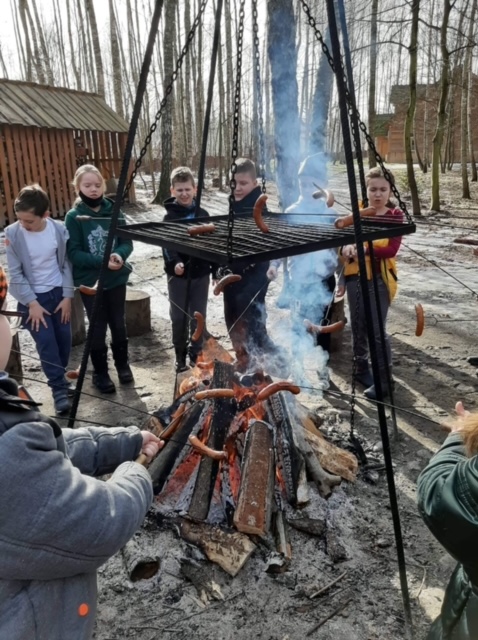 Piękna pogoda, słońce, bezchmurne niebo, ognisko, kiełbaski i MY – uczniowie klasy 3a. Pogoda sprzyjała nam przy pieczeniu kiełbasek i zabawach w Muzeum Wsi Radomskiej.