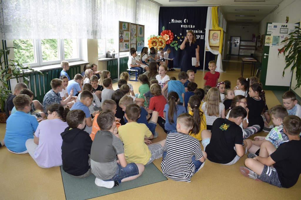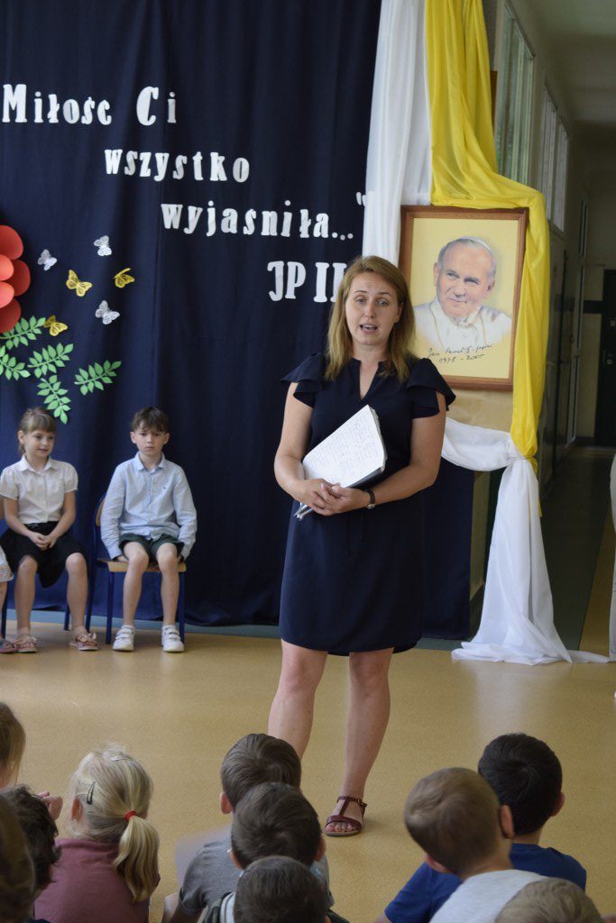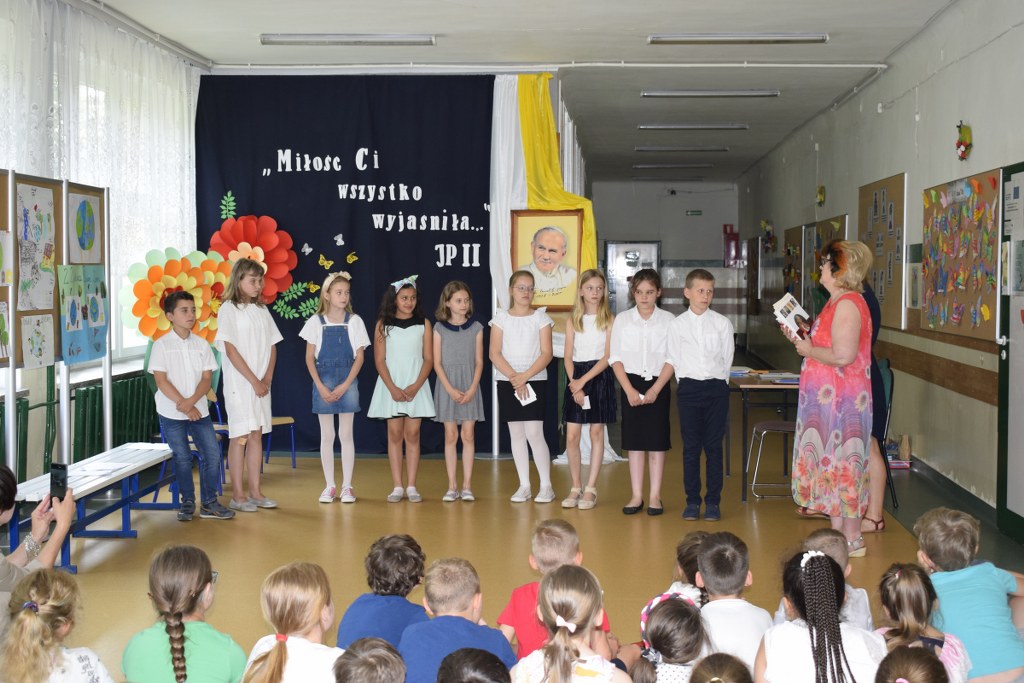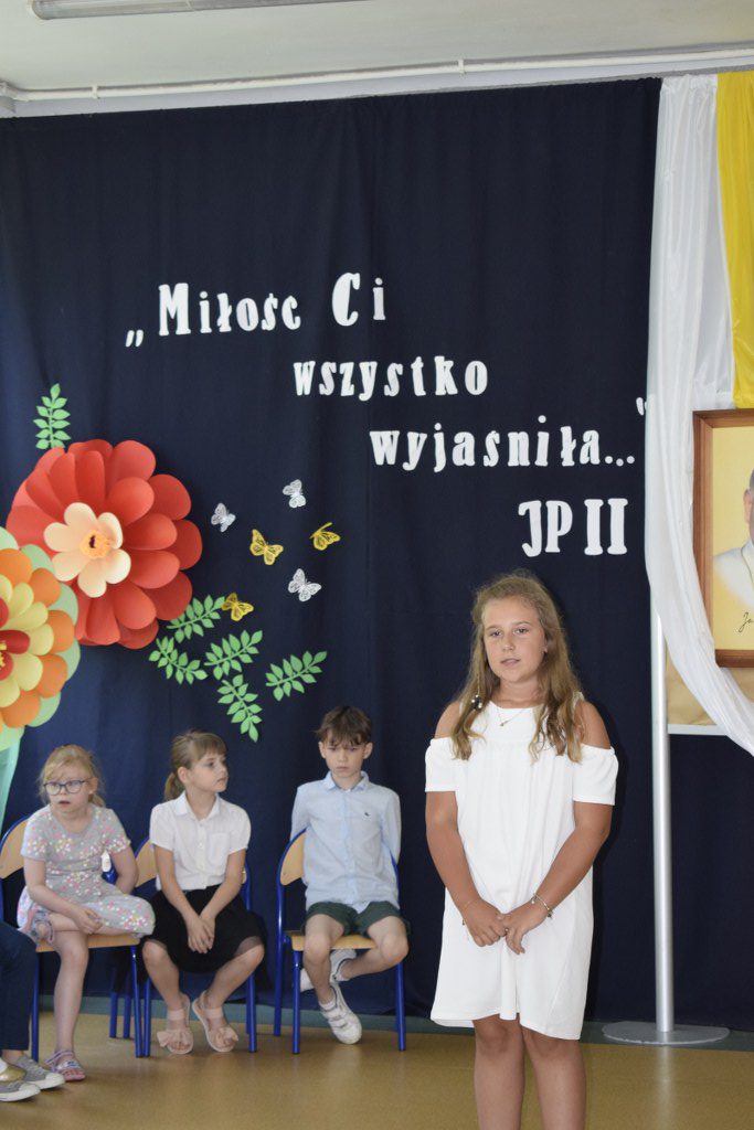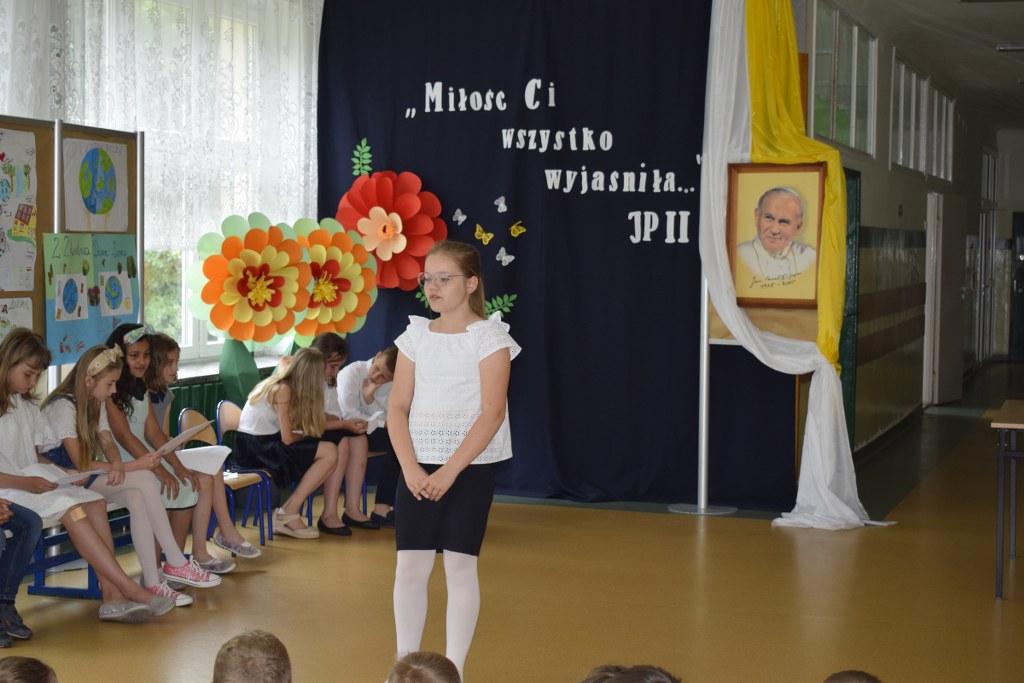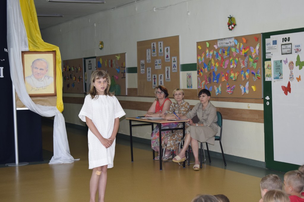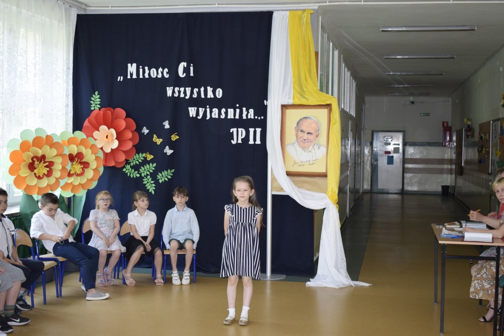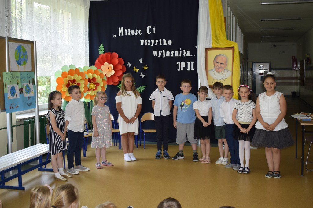 W uroczysty sposób zakończyliśmy obchody 100-ej rocznicy urodzin Świętego Jana Pawła II. 16 czerwca w naszej szkole odbył się konkurs poezji Jana Pawła II. Uczniowie klas 3a, 3b, 4a interpretowali wiersze naszego Wielkiego Rodaka.