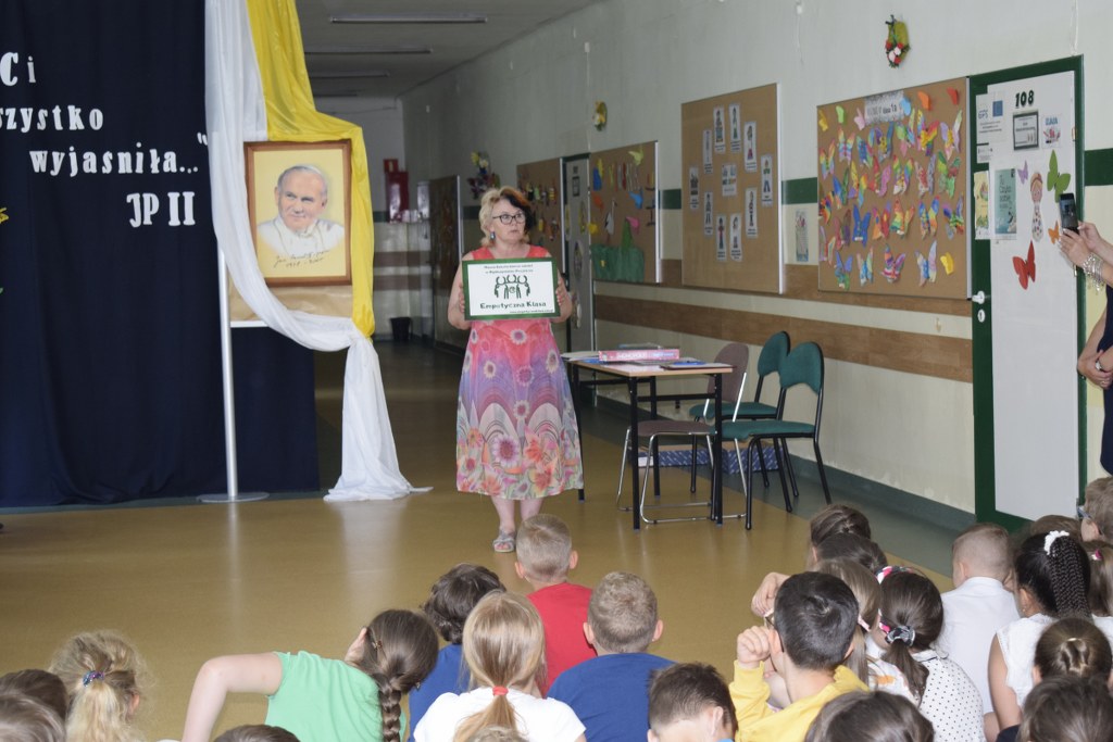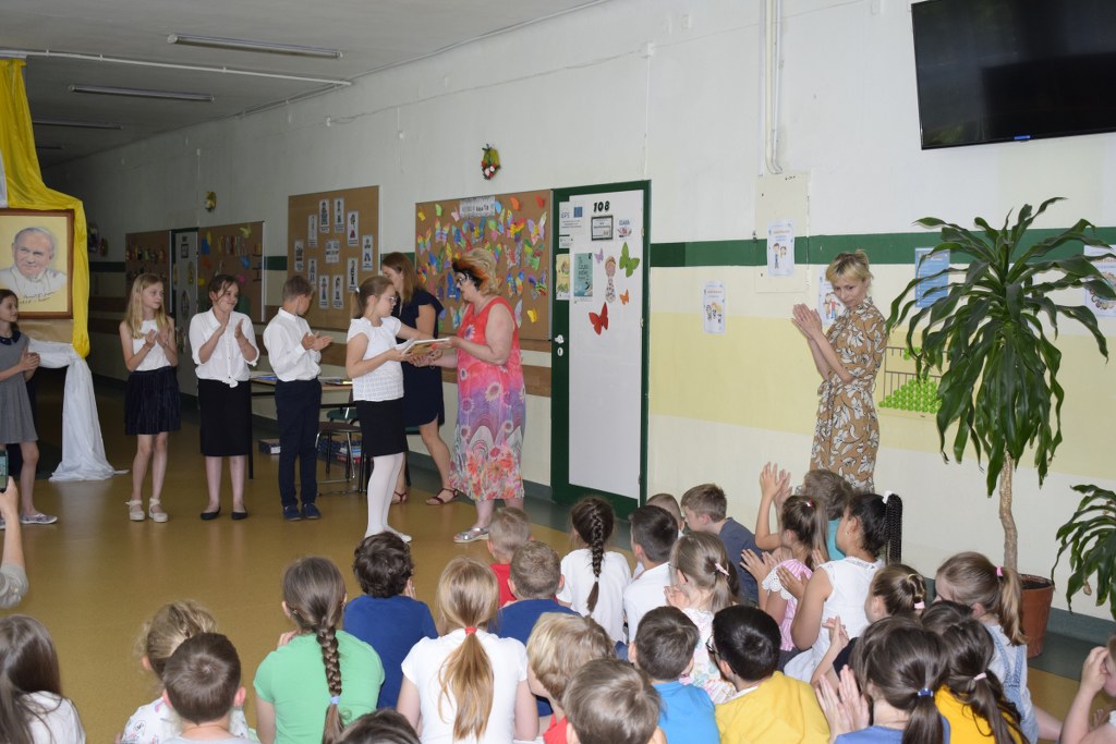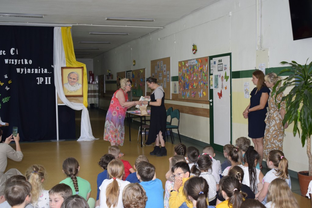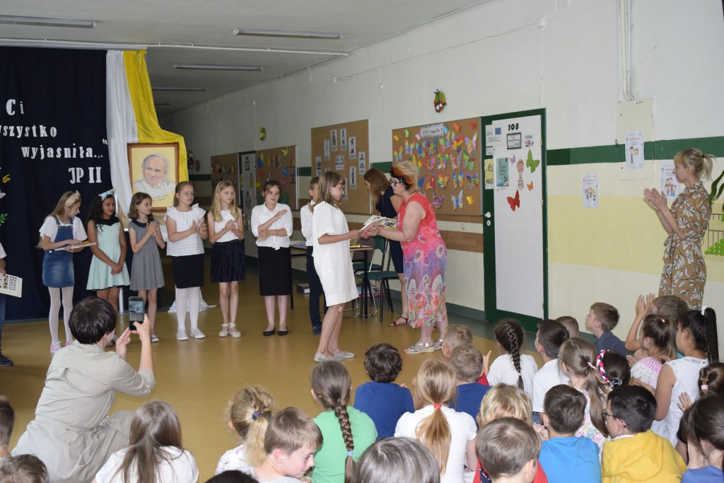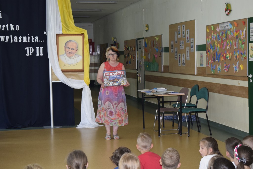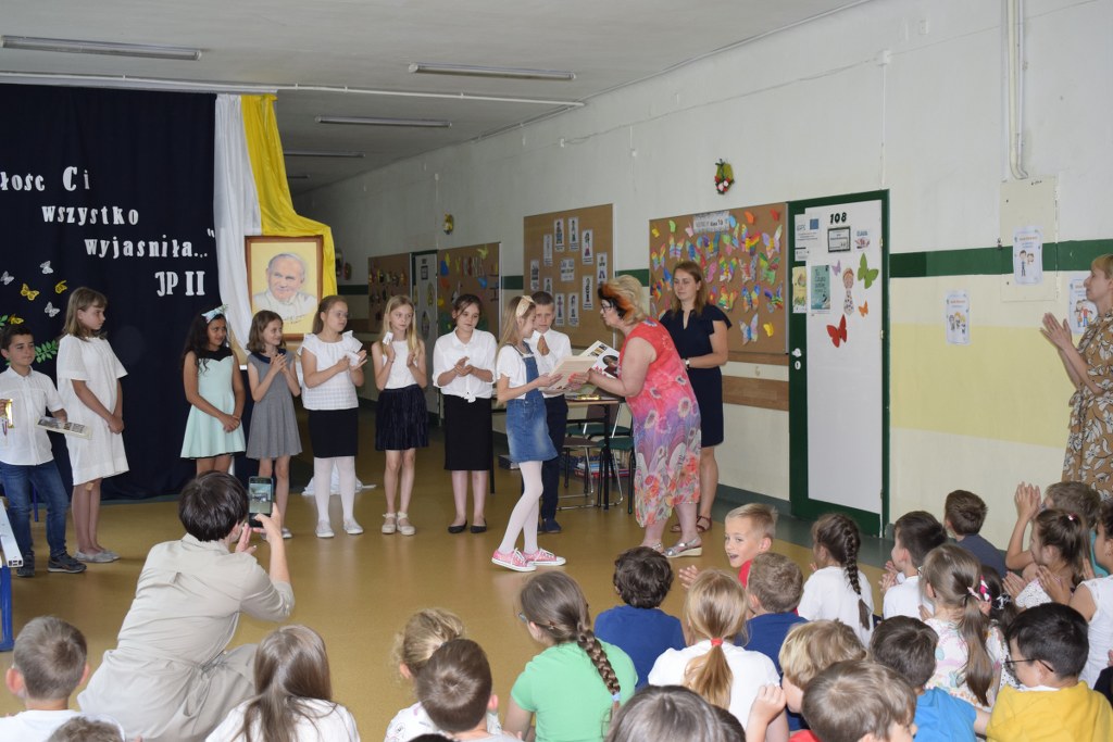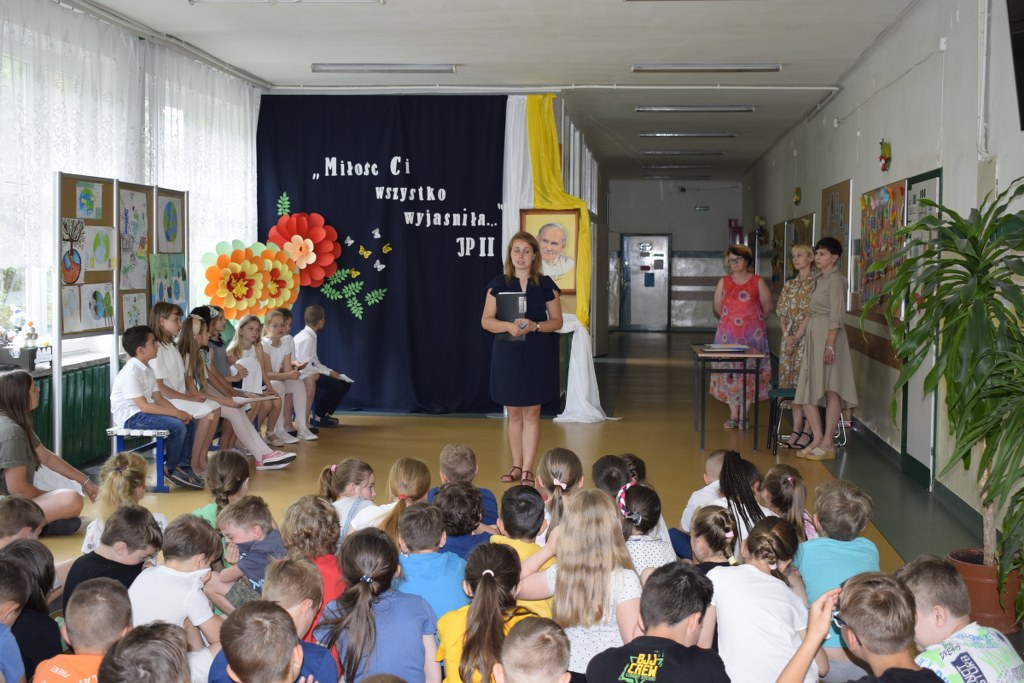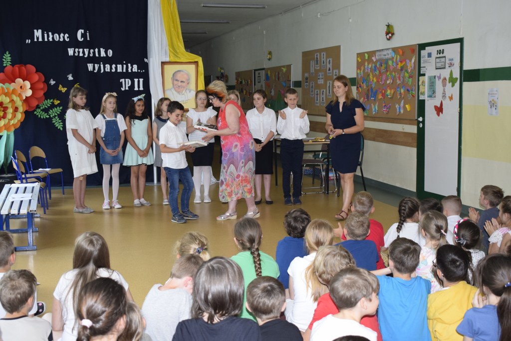 W uroczysty sposób zakończyliśmy obchody 100-ej rocznicy urodzin Świętego Jana Pawła II. 16 czerwca w naszej szkole odbył się konkurs poezji Jana Pawła II. Uczniowie klas 3a, 3b, 4a interpretowali wiersze naszego Wielkiego Rodaka.