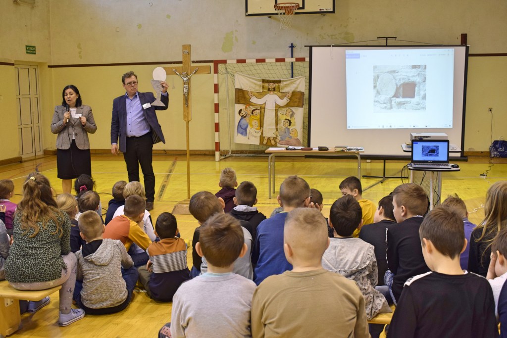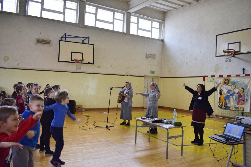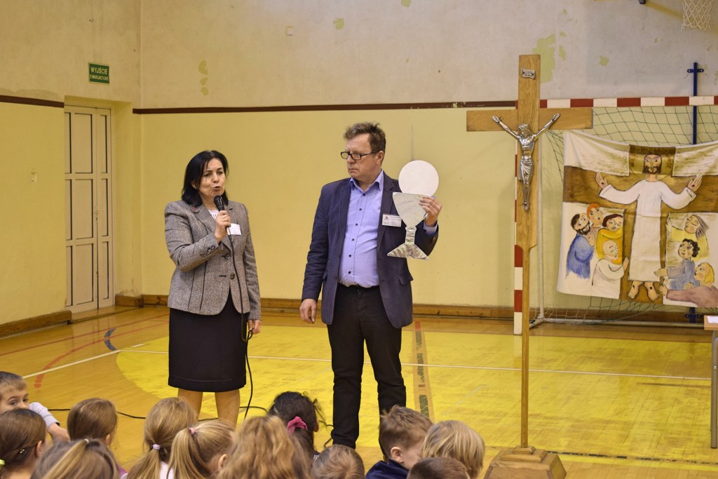 W dniach 26-28 lutego 2020 roku dzieci z naszej szkoły uczestniczyły w rekolekcjach wielkopostnych, podczas których brały udział we Mszy świętej oraz drodze krzyżowej. Po spotkaniu w kościele, zajęcia były kontynuowane na sali gimnastycznej PSP 27 , na której naukę rekolekcyjną głosili Małgorzata i Mirosław Ciuraszkiewicz – małżeństwo z Częstochowy. Dzieci usłyszały o pięknej miłości Boga. Doświadczyły także, że Pan Jezus zna je po imieniu i kocha za darmo. Małżeństwo podzieliło się z nami pięknym świadectwem swojego życia i cudach, jakie Pan działa w ich życiu. Dzieci uświadomiły sobie, że Pan umarł na krzyżu za każdego z nas i przebaczył nam nasze grzechy. Ostatniego dnia zostali zaproszeni, aby działać na co dzień we wspólnocie: rodzinnej, szkolnej i z Nim zmieniali świat. Pełni pokoju i radości przyjęliśmy to zaproszenie.