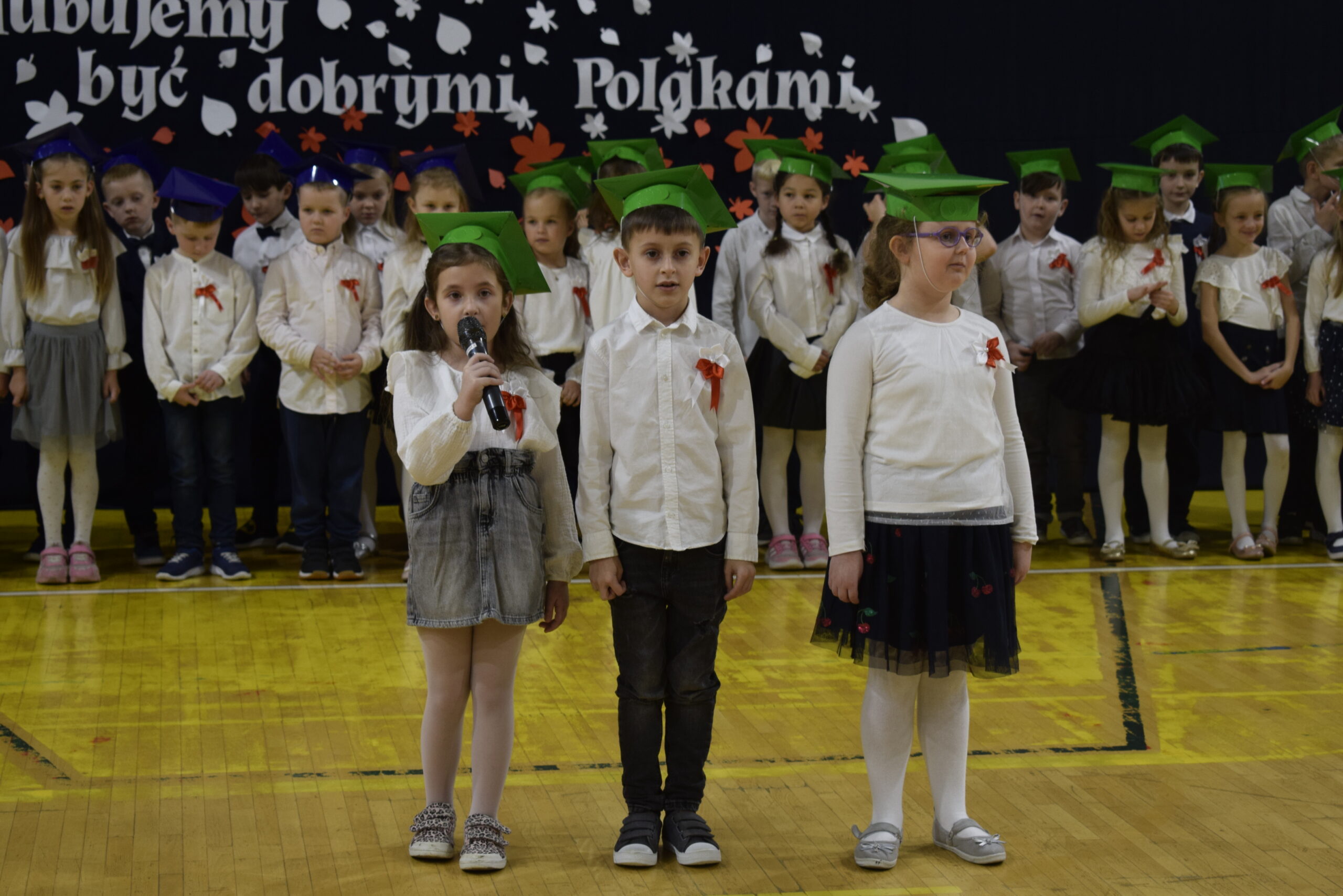 O godzinie 13 na sali gimnastycznej zgromadzili się uczniowie, nauczyciele, rodzice i bliscy bohaterów uroczystości oraz znamienici goście, wśród których znalazła się Pani wiceprezydent Radomia Katarzyna Kalinowska, radny Pan Piotr Szprendałowicz, dyrektorka Wydziału Edukacji Pani Agnieszka Grabska i dyrektorka Publicznego Przedszkola Nr 3 w Radomiu – Pani Wioletta Bogucka.