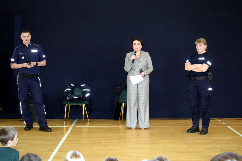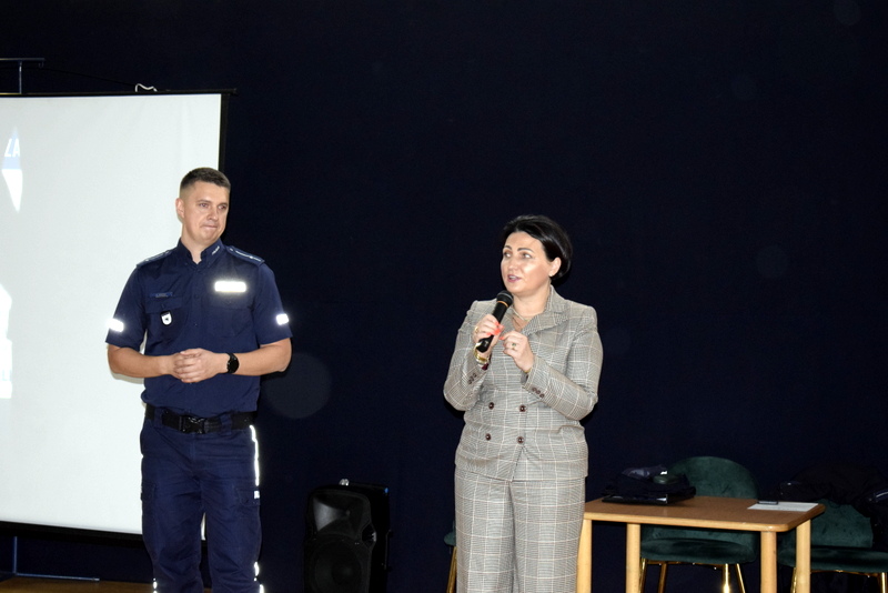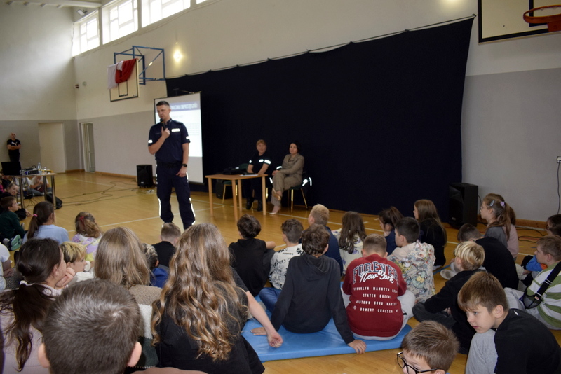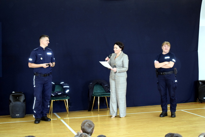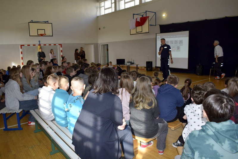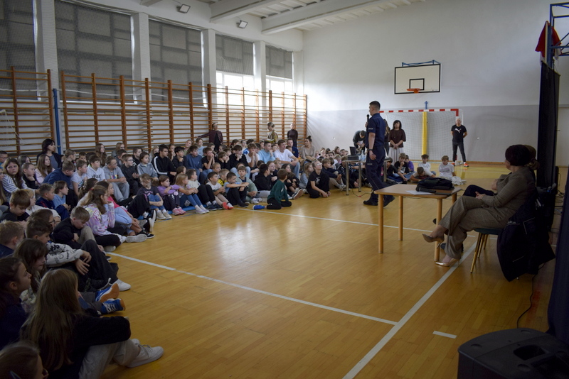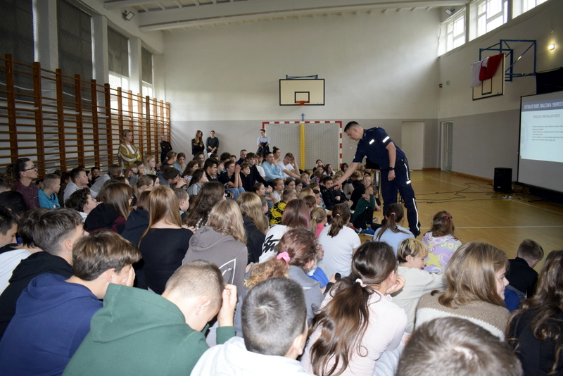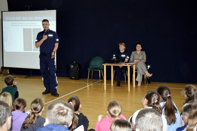 W ramach Tygodnia odbyły się także niezwykle wartościowe dwa spotkania profilaktyczne wszystkich uczniów z Policją. Naszym gościem był mł.asp. Kamil Warda z Centralnego Biura Zwalczania Cyberprzestępczości w Radomiu oraz pani dzielnicowa mł.asp. Katarzyna Cielecka. Nasz gość zapoznał bardzo rzetelnie młodszych i starszych uczniów z tematem negatywnych skutków korzystania ze smartfonów, przemocy rówieśniczej, hejtu, cyberbezpieczeństwa, bezpieczeństwa w szkole i poza nią oraz reagowaniu na nieznajomych.