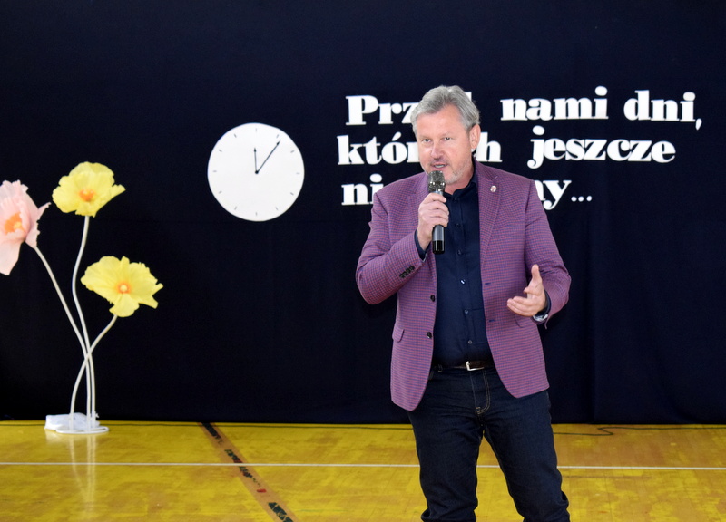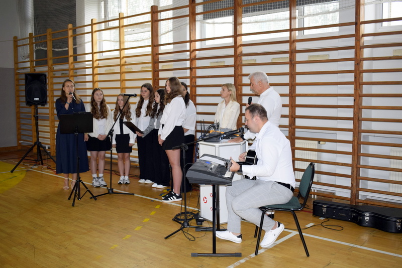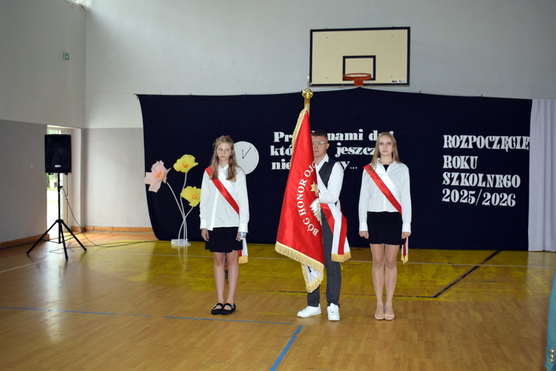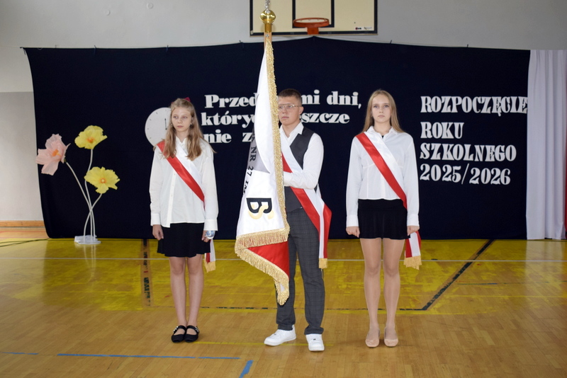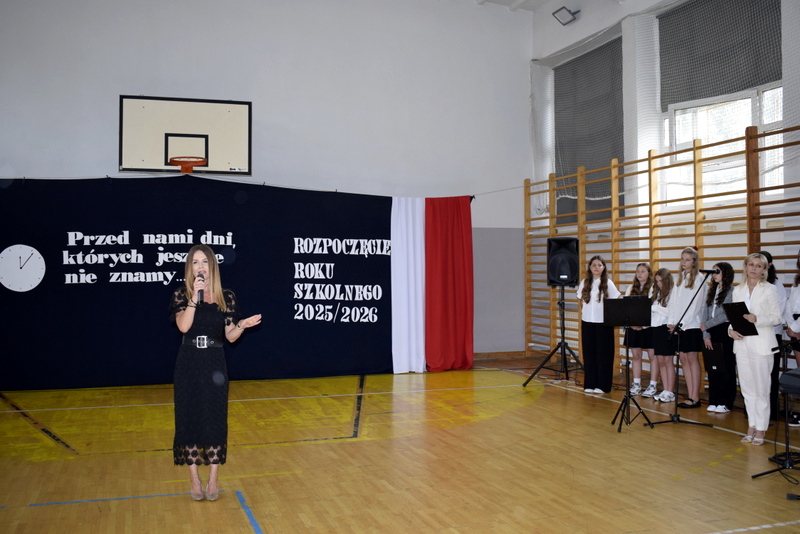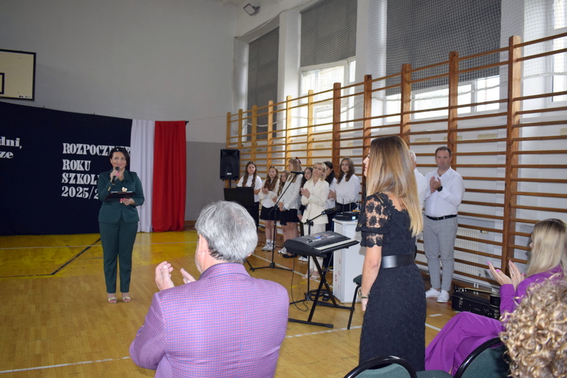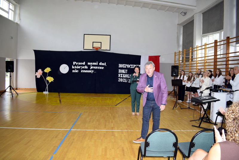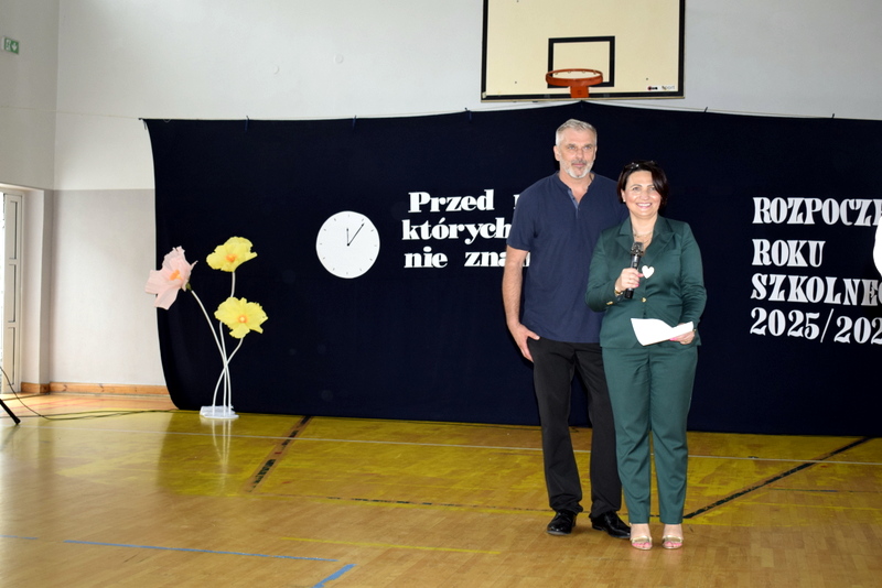 Na sali gimnastycznej spotkali się uczniowie naszej szkoły wraz z nauczycielami i przejętymi rodzicami. Swoją obecnością zaszczycili nas także goście specjalni: Pani Wiceprezydent Radomia Katarzyna Kalinowska oraz Radny Pan Piotr Szprendałowicz.