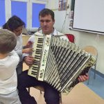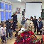 Dzieci z klasy 1b oraz 5a miały możliwość wysłuchania walczyków, poleczek, oberków wykonywanych na żywo przez ludowych artystów, uczyły się podstawowych kroków ludowych tańców, śpiewały piosenki napisane gwarą, poznawały tradycje ludowe, grały na instrumentach. Artyści opowiadali o kulturze ludowej oraz prezentowali własnoręcznie wykonane stroje ludowe oraz inne elementy rękodzieła. Te bardzo emocjonujące, dynamiczne zajęcia dokumentował kamerzysta z TV Dami, która ma wyemitować zarejestrowany materiał. Warsztaty wprowadziły uczniów w bogaty i ciekawy świat twórczości ludowej i tradycji, na której opiera się nasze dziedzictwo kulturowe. Oprócz niezaprzeczalnych korzyści edukacyjnych i kulturowych, przyniosły dzieciom wiele radości i zadowolenia.