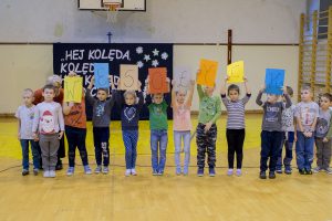Jak co roku przed Świętem Bożego Narodzenia w naszej szkole odbyło się spotkanie całej społeczności szkolnej. W tym roku formuła przewidywała prezentację życzeń poszczególnych zespołów klasowych i wspólne kolędowanie. Klasa pierwsza dodatkowo wykonała napis będący formą życzeń, który zaprezentowała wszystkim obecnym. Po prezentacji życzeń przyszedł czas na tradycyjne połamanie opłatkiem już nie tylko w gronie klasowym, ale z wszystkimi obecnymi na spotkaniu. Całość dopełniało jak zwykle trafnie dobrane przemówienie Pani Dyrektor Anety Maciejewskiej – Pawłowskiej wprowadzając wszystkich w nieco refleksyjny i świąteczny nastrój.