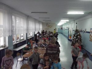 14 grudnia 2018 roku szkolny z inicjatywy Pani Dyrektor Anety Maciejewskiej – Pawłowskiej odbyły się w naszej szkole warsztaty bożonarodzeniowe. Uczniowie klas 3 gimnazjum pomogli w przygotowaniu miejsca, rozłożyli choinkę i naszykowali warsztat pracy, wykonali półfabrykaty, ale przede wszystkim wspierali dzieci z klas 1 i 2 w realizacji zadań.